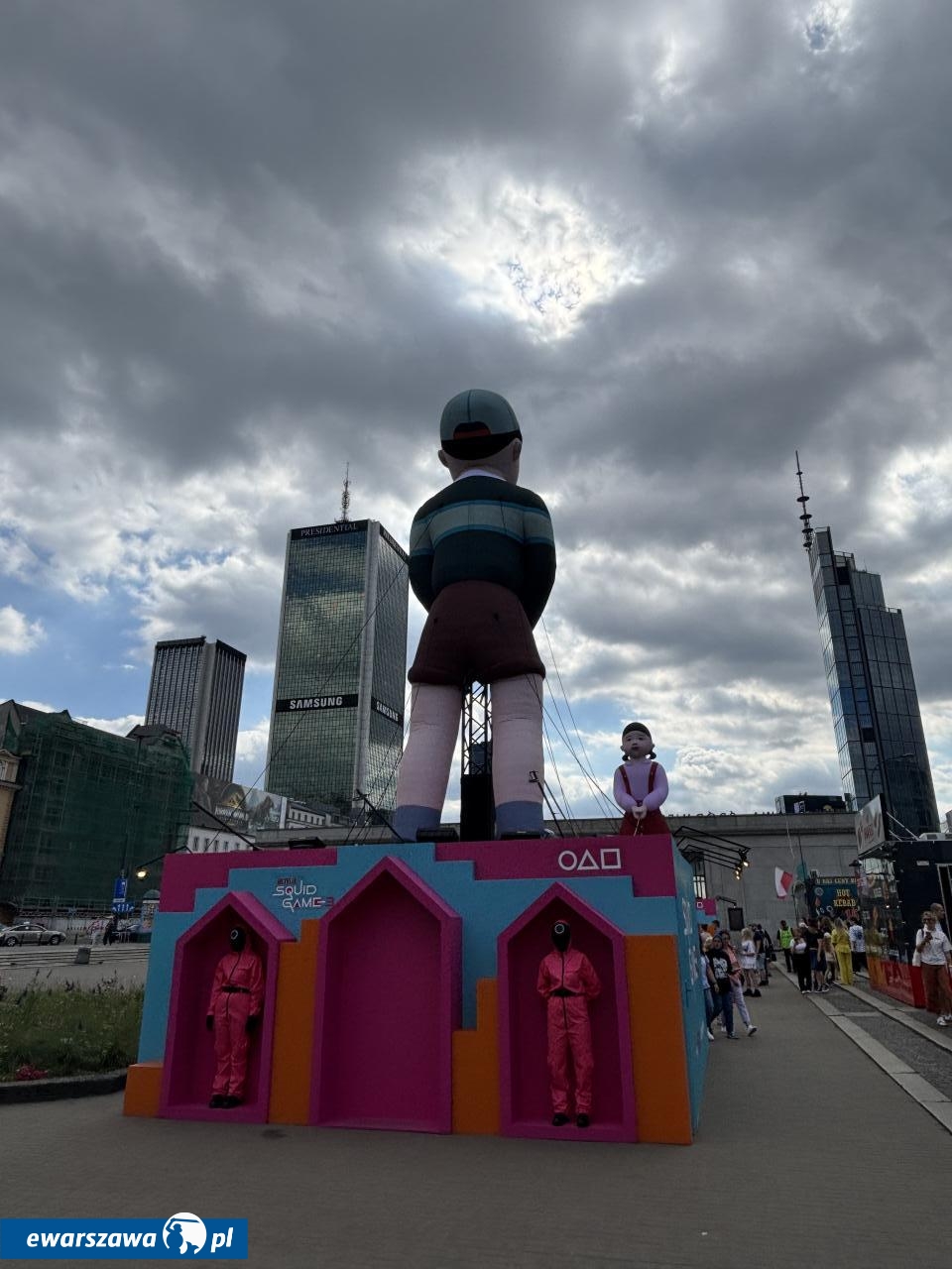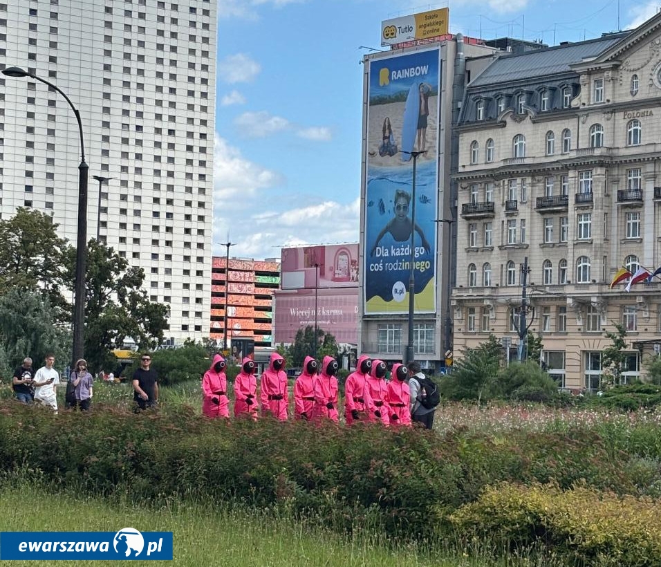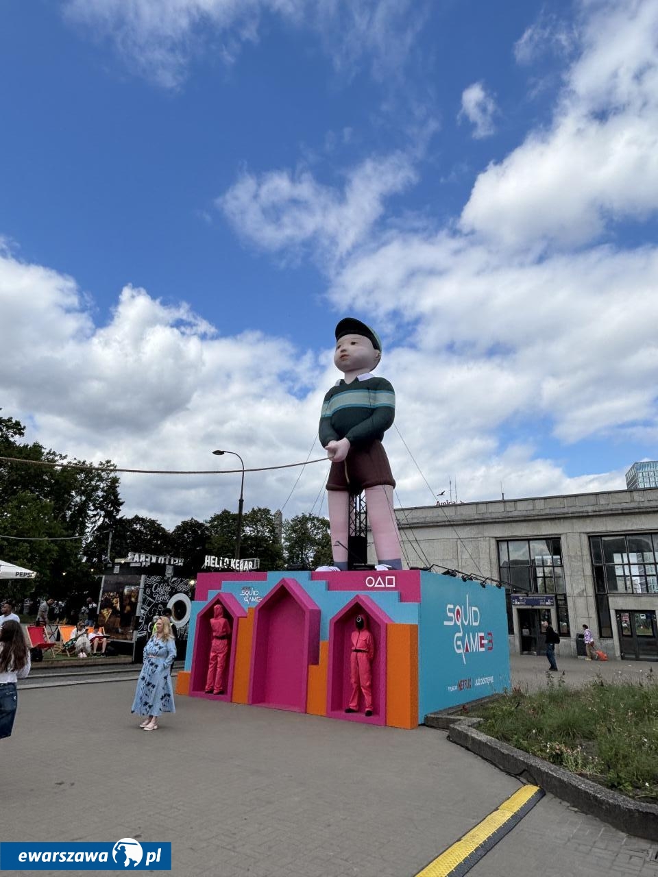 W związku z finałowym sezonem koreańskiego hitu Netflixa "Squid Game" w ostatnich dniach pod Pałacem Kultury i Nauki stanęły figury znane z serialu tak jak i dekoracja w której można było sobie zrobić zdjęcie wśród bohaterów w charakterystycznych różowych kombinezonach. Poza tym co pół godziny można było obserwować ich przemarsz. Taki sposób promocji nowych odcinków podzielił internautów.