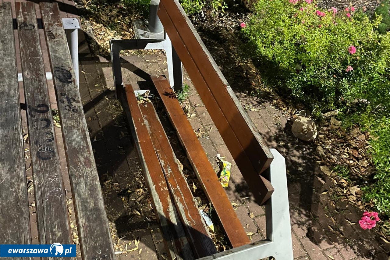 zniszczona ławka | fot. facebook.com/MiastoLegionowo