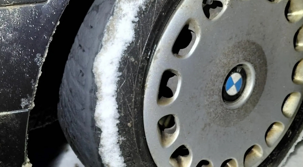 Jechał na takich oponach w czasie śnieżycy. Dostał mandat