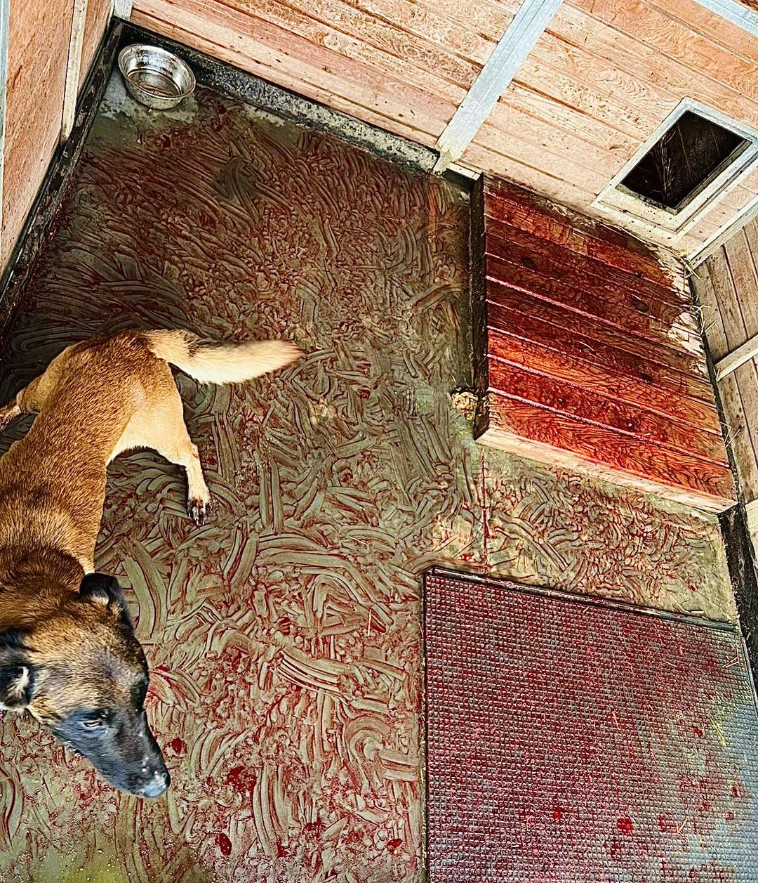 "Zwracam się więc do Pana z uprzejmą prośbą o poświęcenie chwili uwagi sprawie, którą zajmuje się od marca 2025 r. Pies doprowadzony w Komendzie Stołecznej Policji w Warszawie do stanu krytycznego. Posiadam dokumentację fotograficzną kojca całego we krwi, dokumentację medyczną wskazującą na skrajne zaniedbania. Pies poraniony i zagłodzony został zwrócony hodowcy, którego KSP obecnie pozywa, wskazując że pies nie nadaje się do pracy. W trakcie odbioru psa nie pokazano części gdzie przebywają pozostałe zwierzęta jednak wobec stanu w jakim odebraliśmy Tasmana konieczne wydaje się ocenienie dobrostanu pozostałych zwierząt pozostających na utrzymaniu Policji. Tasman na zdjęciu był cały czas w zamknięciu i okaleczał się. Dopiero jak pies był już w stanie tragicznym, komendant pozwolił psa zabrać. Z posiadanych przez nas informacji wynika, że psy w KSP czasem kilka dni nie wychodzą z kojców nawet na spacer fizjologiczny" - napisała autorka wiadomości.