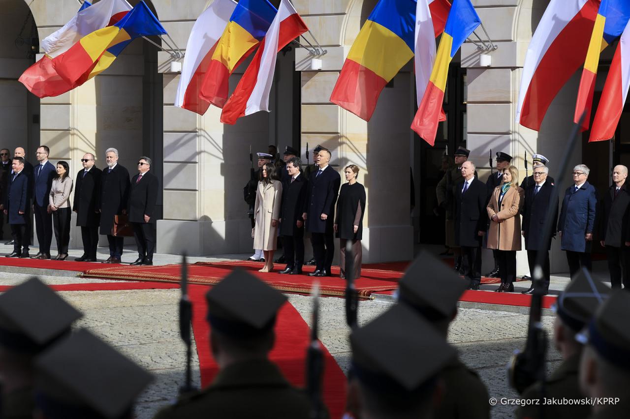 W czwartek - 5 marca - Prezydent Rumunii Nicuor Dan wraz z Mirabelą Gradinaru złożyli pierwszą oficjalną wizytę w Polsce. Przed południem na dziedzińcu Pałacu Prezydenckiego w Warszawie odbyła się uroczystość powitania gości, w której uczestniczyła też Marta Nawrocka. Podczas spotkania prezydenci Polski i Rumunii skupili się przede wszystkim na kwestiach związanych z bezpieczeństwem, o czym Karol Nawrocki opowiedział później na konferencji prasowej.