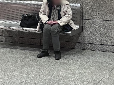 W metrze Młociny siedzi bezdomny mężczyzna. Jest trzeźwy. Mieszkanka szuka dla niego pomocy