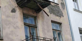 Stalowa belka oderwała się od balkonu tuż nad chodnikiem. "Kontakt ze służbami technicznymi się nie powiódł"