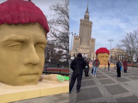 Gigantyczna głowa rapera Maty stanęła pod Pałacem Kultury i Nauki. "Profanacja tego miejsca"