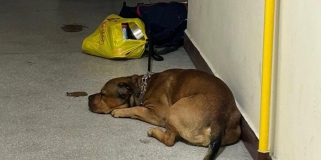 Ktoś podrzucił psa w kolczatce do bloku na Saskiej Kępie. "Został przywiązany do toreb z jedzeniem dla niego i miską"