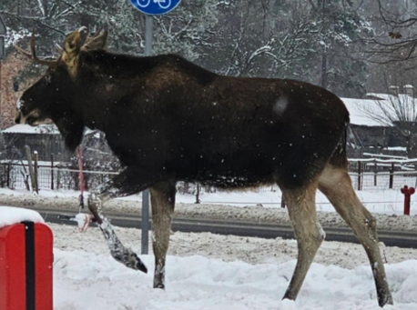 Młody łoś z dziecięcą huśtawką na porożu. Jest apel leśników
