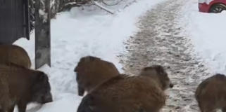 Dziki na warszawskim osiedlu chciały zrobić zakupy w Biedronce. "A tu zonk"