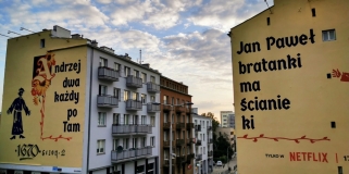 Na Powiślu powstał mural Netflixa, rozdzielony ulicą. "Andrzej" po jednej, a "Jan Paweł" po drugiej stronie