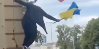 Po Internecie krąży film, na którym z rzekomego budynku w Warszawie ściągana jest ukraińska flaga. Ten film nie został nagrany w stolicy