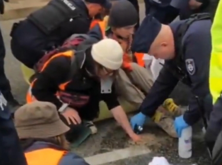Protestujący przykleili się do Mostu Poniatowskiego klejem mocnym jak beton. Policja bezradna