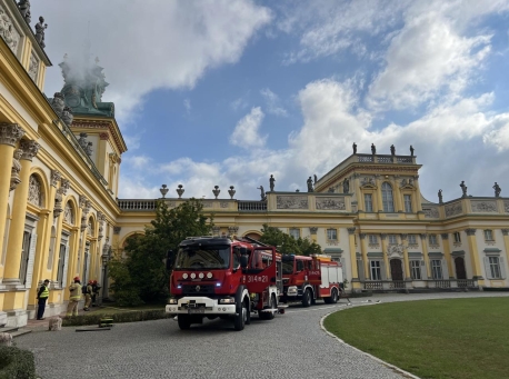 Wozy strażackie pod Muzeum Pałacu Króla Jana III Sobieskiego w Wilanowie. "Przestraszyłam się"