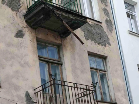 Stalowa belka oderwała się od balkonu tuż nad chodnikiem. "Kontakt ze służbami technicznymi się nie powiódł"
