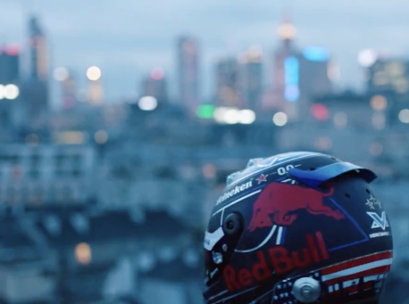 Mistrz świata Formuły 1 reklamuje swój kask... na tle Warszawy