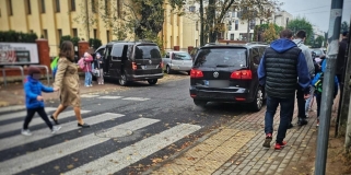 Kierowca dostał mandat z donosu. Wszyscy notorycznie parkują pod szkołą przy przejściu dla pieszych. "Podwożenie dzieci pod same drzwi, to fanaberia"