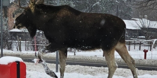 Młody łoś z dziecięcą huśtawką na porożu. Jest apel leśników