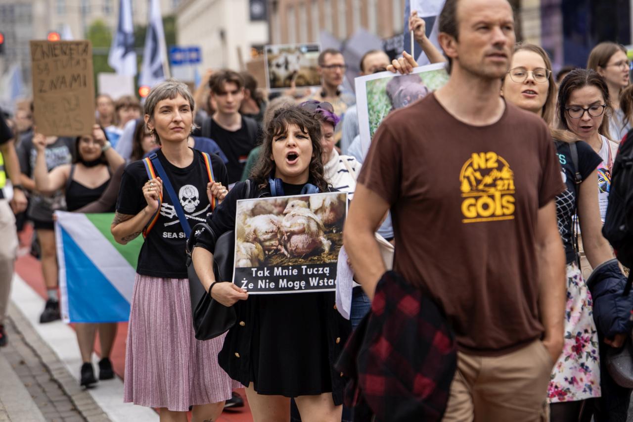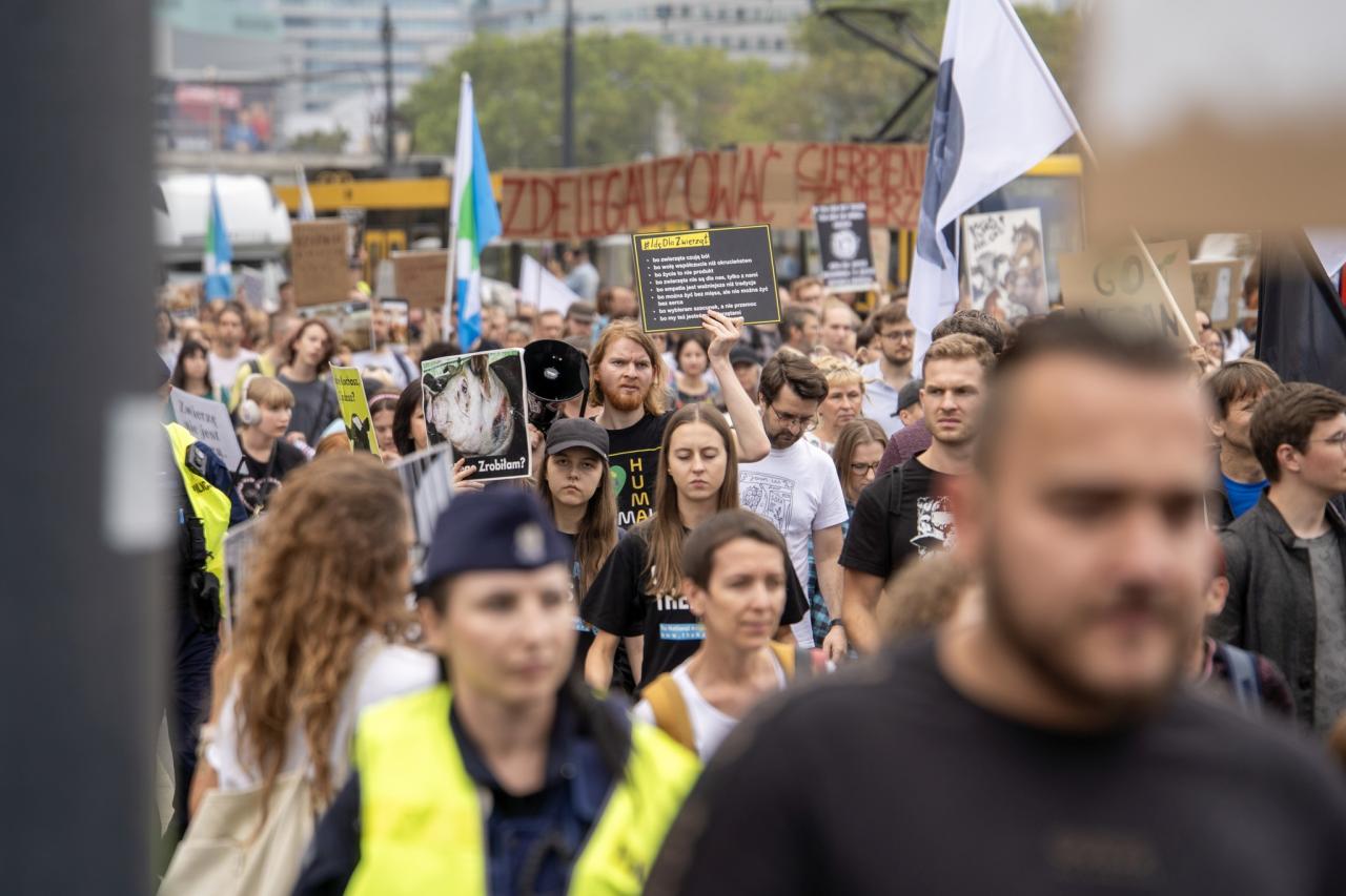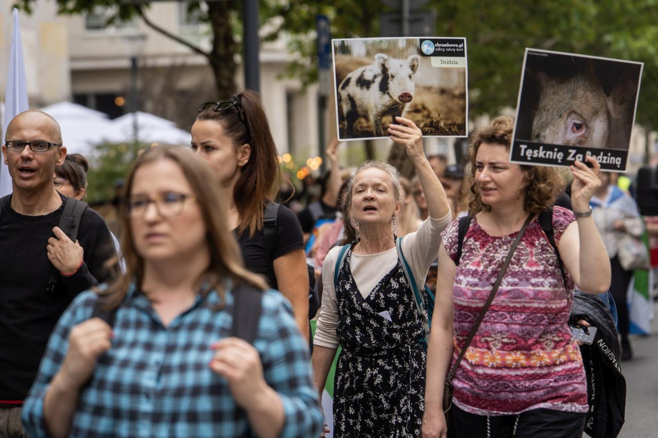 Kilkaset osób przeszło przez Warszawę w obronie zwierząt. Chcą, by wszyscy Polacy stali się weganami
