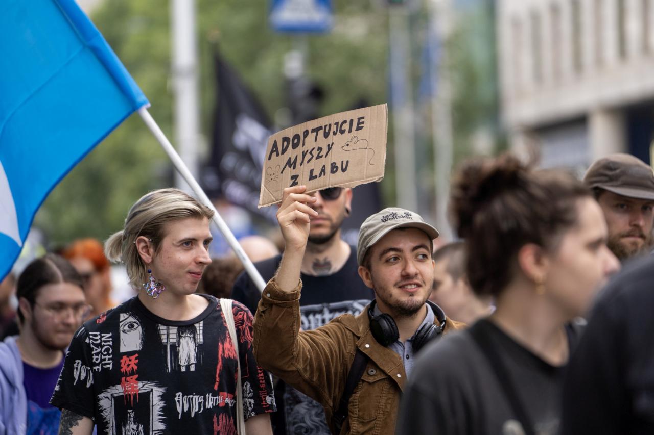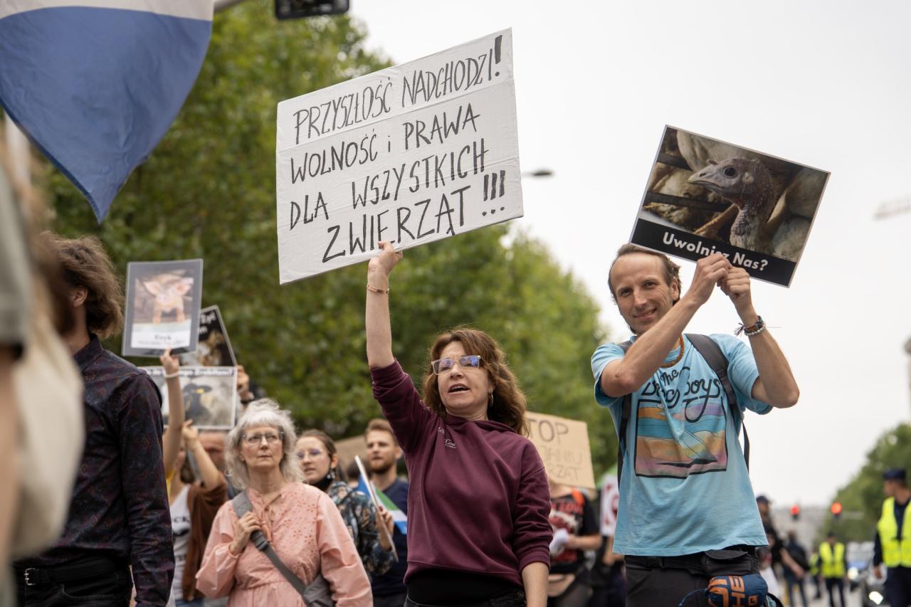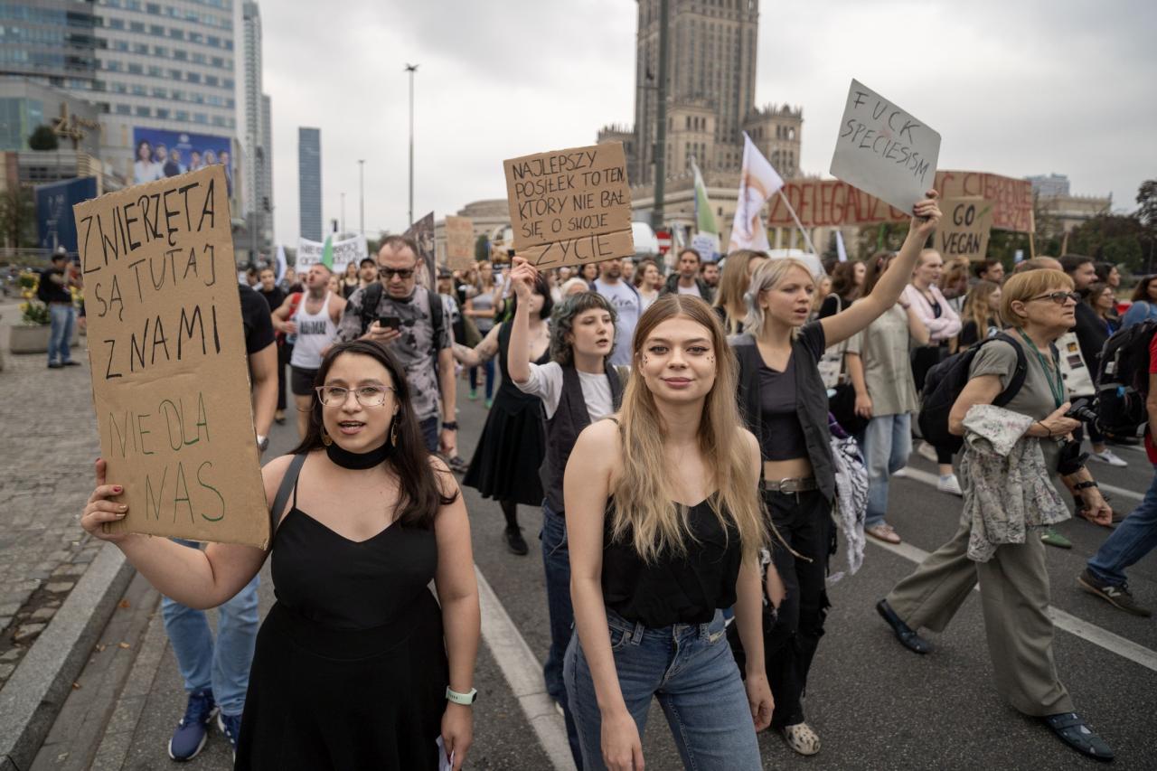 Kilkaset osób przeszło przez Warszawę w obronie zwierząt. Chcą, by wszyscy Polacy stali się weganami