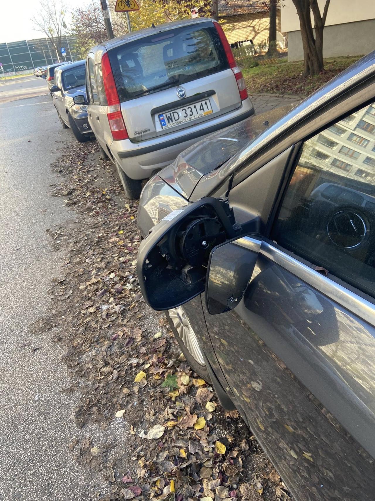 Bielany: kierowca jadąc samochodem uszkodził lusterko innego pojazdu i odjechał. Świadek szuka właściciela uszkodzonego pojazdu