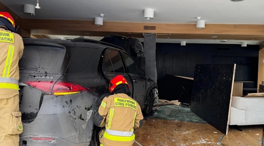 Wola. Auto wjechało po kolizji do lokalu usługowego