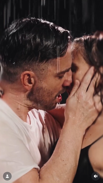 Kaczorowska promuje swój spektakl w stołecznym teatrze, pocałunkiem w strugach deszczu. "To się dzieje"