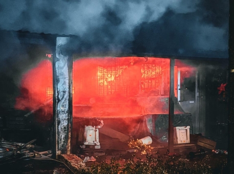 Nocny pożar kontenerów usługowych na terenie targowiska przy Bakalarskiej