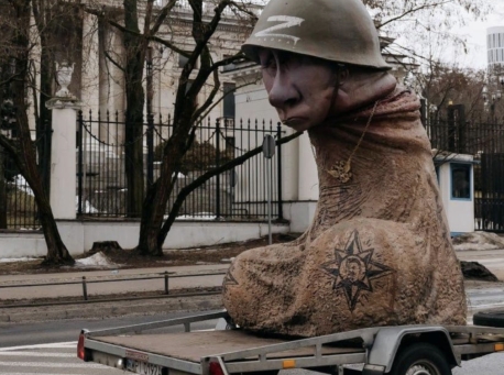 Rzeźba Putina stanęła przed ambasadą Rosji, po czym ruszyła na Warszawę